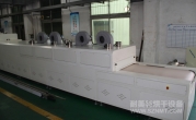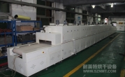 2、外形尺寸(約):總長24000mm*總高1690mm*總寬1220mm,地面到網(wǎng)帶的高度為850mm,爐體內(nèi)進料高度為150mm;烘干部分總長14000mm,分7段獨立控溫(每段4個測溫熱電偶),每段2000mm。冷卻段長4000mm,UV預留區(qū)長2000mm,前后緩沖區(qū)各長500mm,進出料部分長1500mm, 爐體前后裝有急停開關。